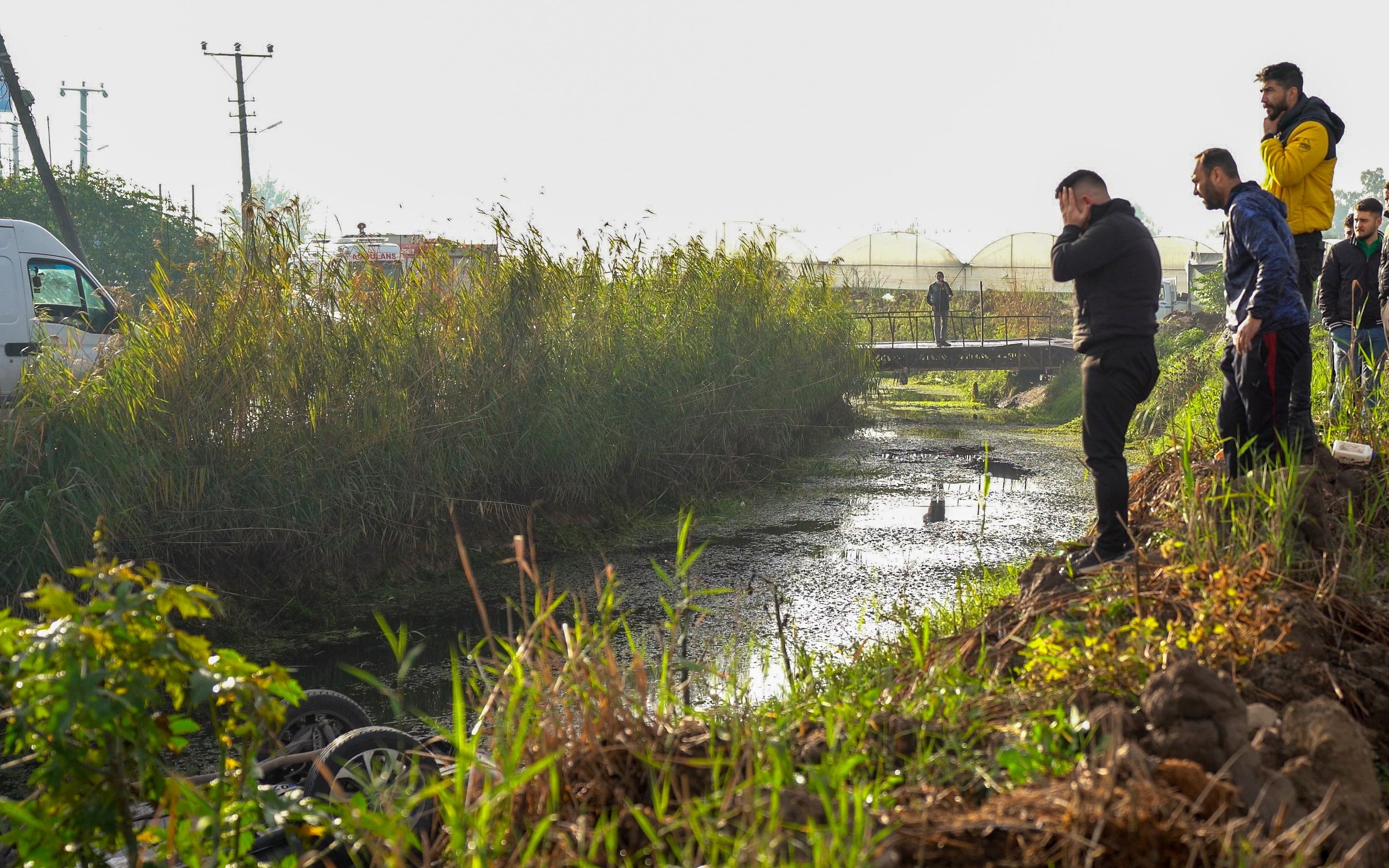 Sabah saat 07.00 sıralarında tarlaya giden çalışanlar, kanalda ters dönmüş aracı fark ederek ihbarda bulundu. Bölgeye itfaiye, sağlık ve polis ekipleri sevk edildi. Araç tamamen suya gömülü olduğu için vinç çağrıldı ve yol trafiğe kapatıldı.